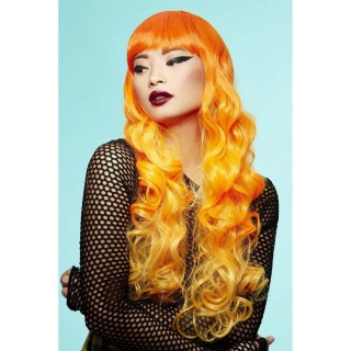 Parrucca color arancione, mossa e con frangia.