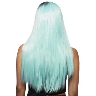 Parrucca lunga e diritta con riga laterale e radice scura nel nostro fresco verde menta pastello.