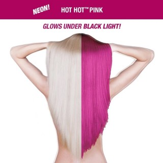 Hot Hot Pink è un colore rosa medio dai toni freddi che brilla sotto la luce UV! Può essere utilizzato su capelli vergini, non decolorati ma per ottenere i migliori risultati, si consiglia di schiarire i capelli fino al raggiungimento di un biondo molto chiaro (livello 11).