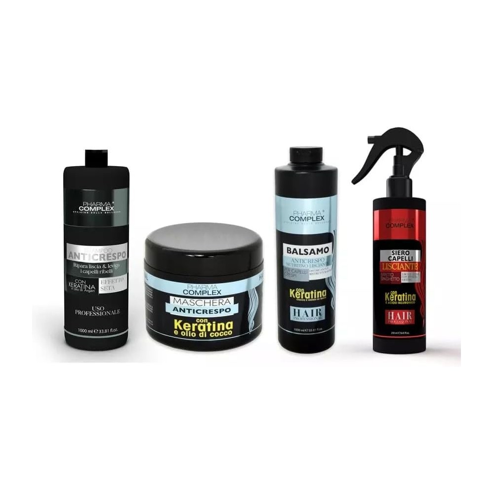 - Pharma Complex Shampoo Anticrespo 1000 ML. A base di cheratina e olio di Argan. Rafforza la struttura del capello, idrata e riduce il crespo. Ideale per capelli secchi, sfibrati e colorati.