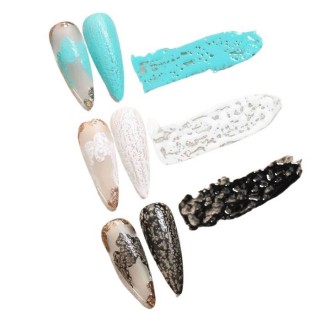 Pattern gel con motivo in pizzo,si applica come uno smalto semipermanente e si trasforma in effetto pizzo/merletto, i motivi si formano naturalmente senza penne per nail art.